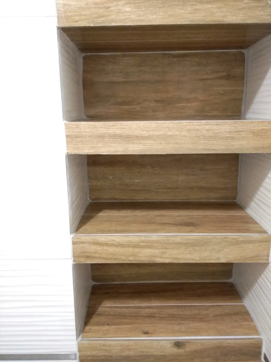 Ytongból készült burkolt piperetartó polcok a fürdőszobában, kihasználva a beugrót egy kicsit másként.